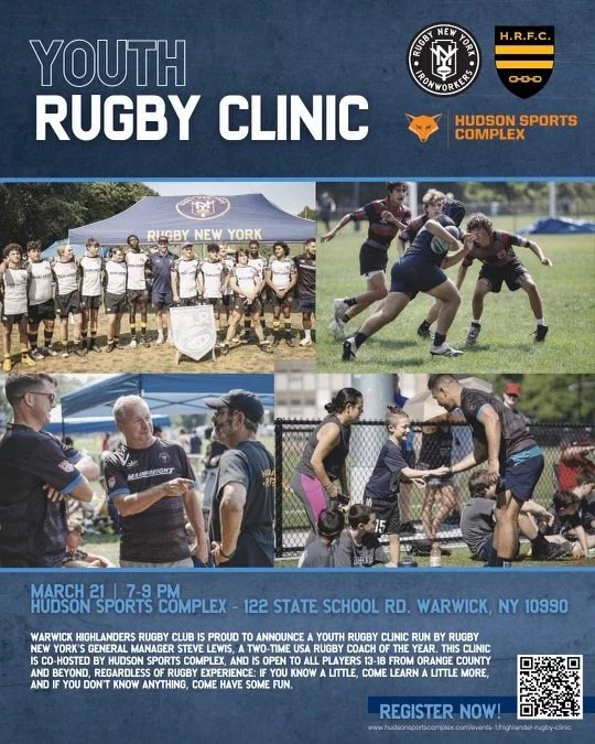Highlanders Youth Rugby with be hosting a clinic run by NY Rugby and co-hosted by Hudson Sports Complex.