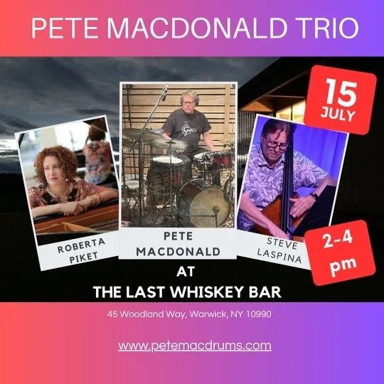 Back to All Events Pete Macdonald Trio at The Last Whiskey Bar Saturday, July 15, 2023 2:00 PM 4:00 PM The Last Whiskey Bar 45 Woodland Way Warwick,NY (map) Google Calendar ICS Pete Macdonald Trio Performing at The Last Whiskey BarSaturday, July 15th2:00 to 4:00pm