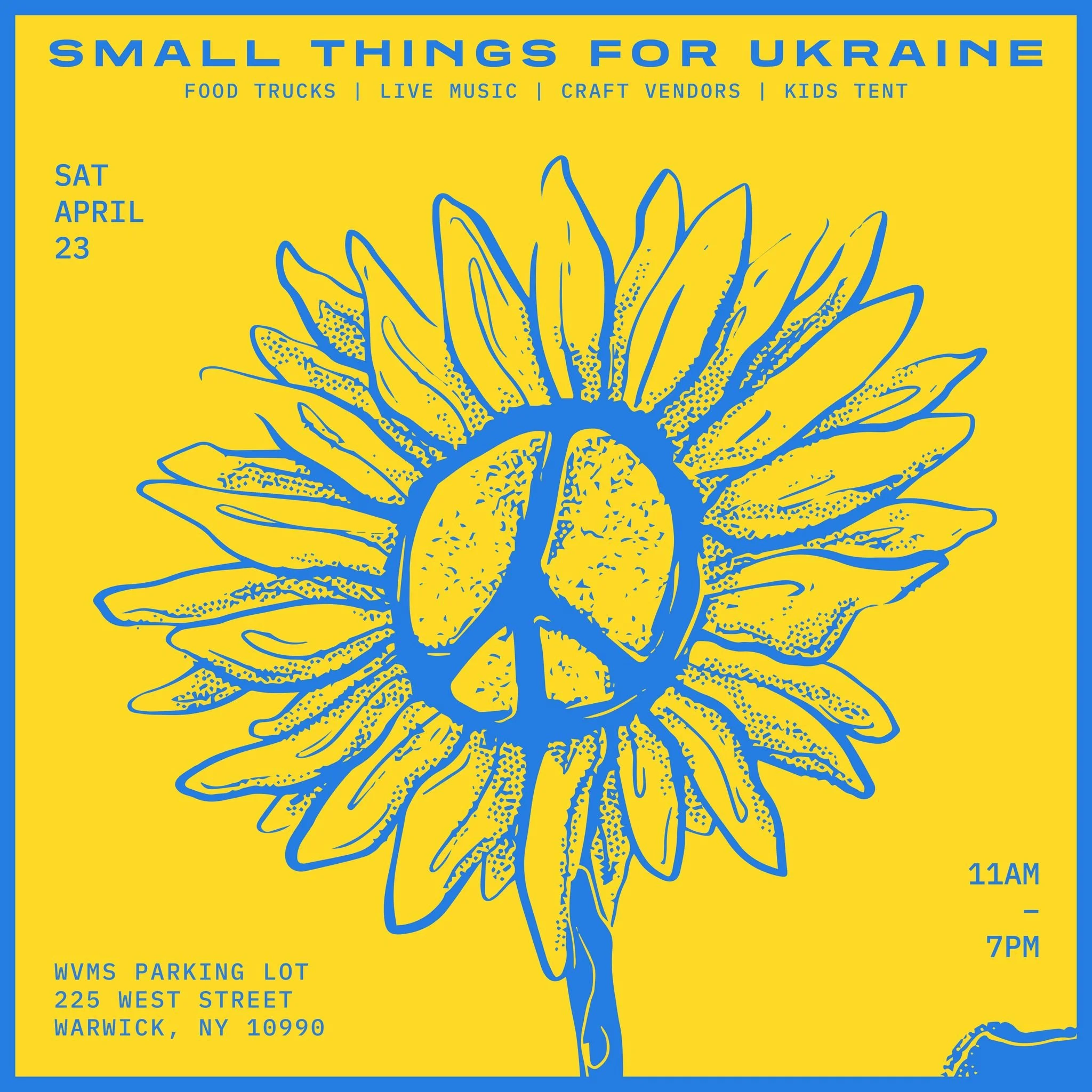Head to the Warwick Valley Middle School for Small Things for Ukraine - a popup food truck event for Ukraine relief offering food and dessert plus music, craft vendors and kids’ activities.