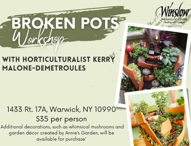 Join our expert horticulturist Kerry Malone-Demetroules for another inspiring and hands-on evening of creative fun with plants. We will be using parts and pieces of ceramic pots to create unique miniature live landscapes. Whether you’re a seasoned plant lover or a curious beginner, you will learn how to transform what was once just a cracked or broken pot into a small forest…or tiny terraced garden…or park (or go anywhere your imagination takes you!) Additional add-ons created by Annie's Garden will be available for purchase, such as whimsical decorative mushrooms, garden décor, and other charming accessories to help you personalize and enhance your final creation. Registration required as space is limited.